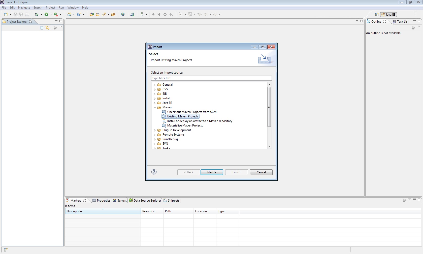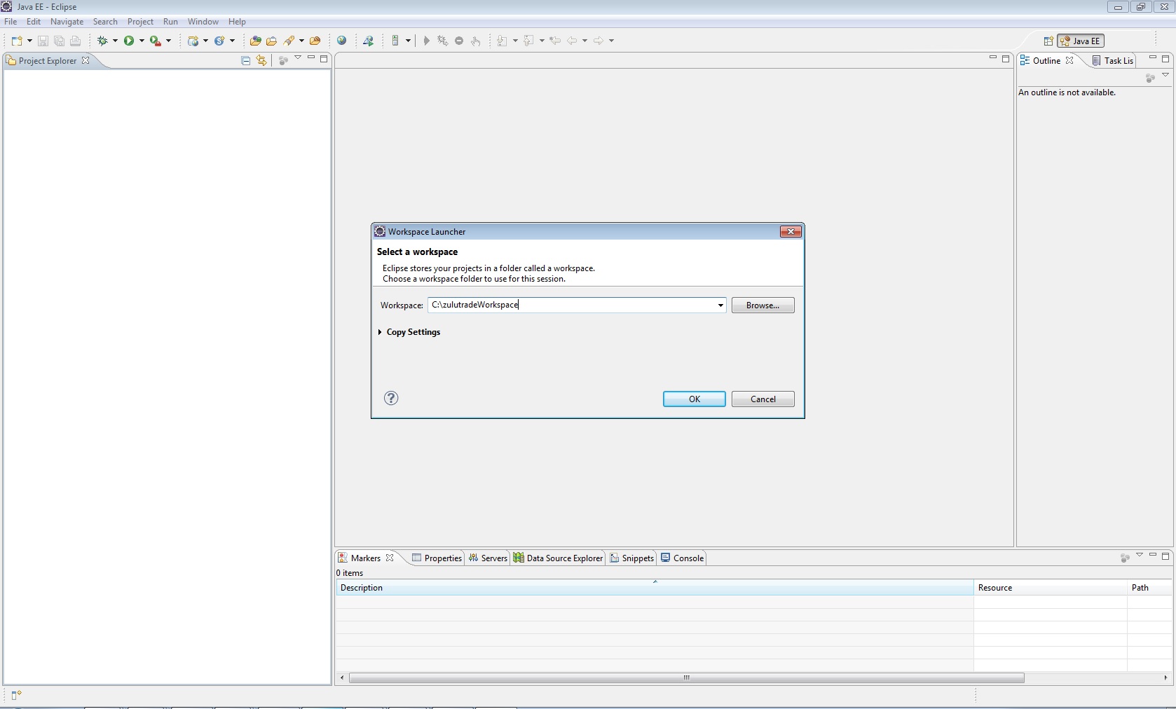 Create a new workspace (File->Switch workspace->other->) named "zulutradeWorkspace" under C:\