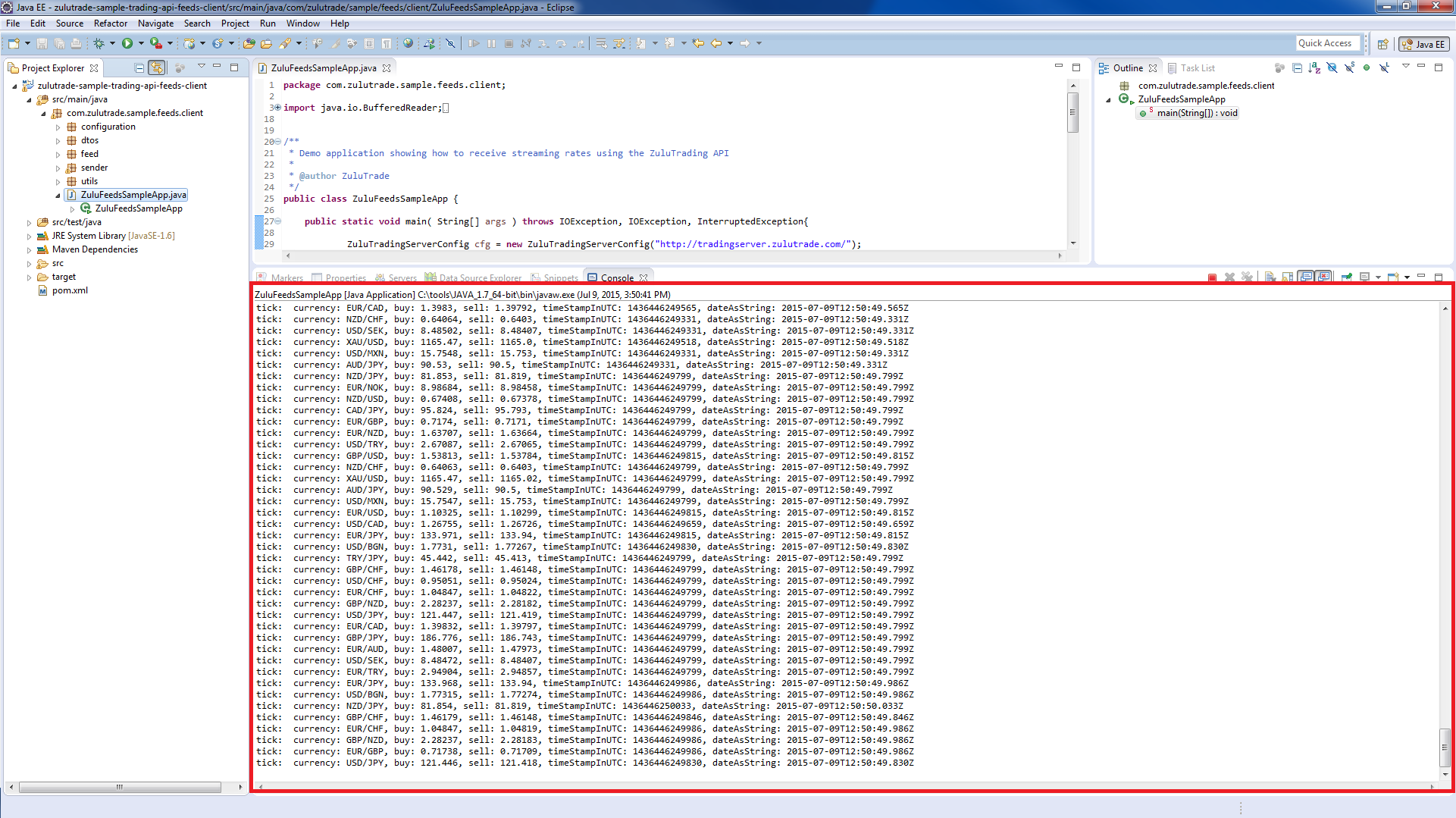 The sample eclipse project demonstrating the rates streaming API, by clicking