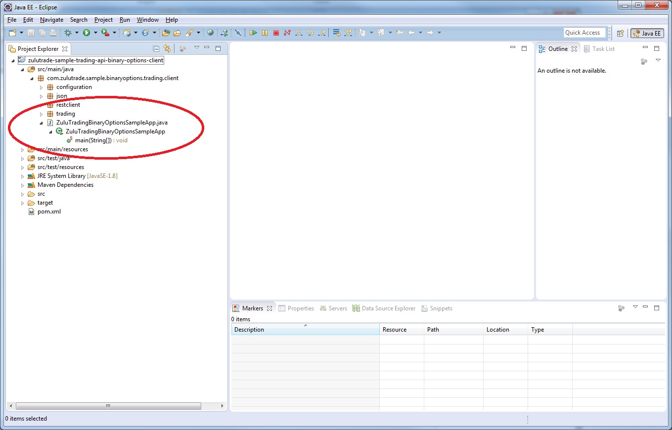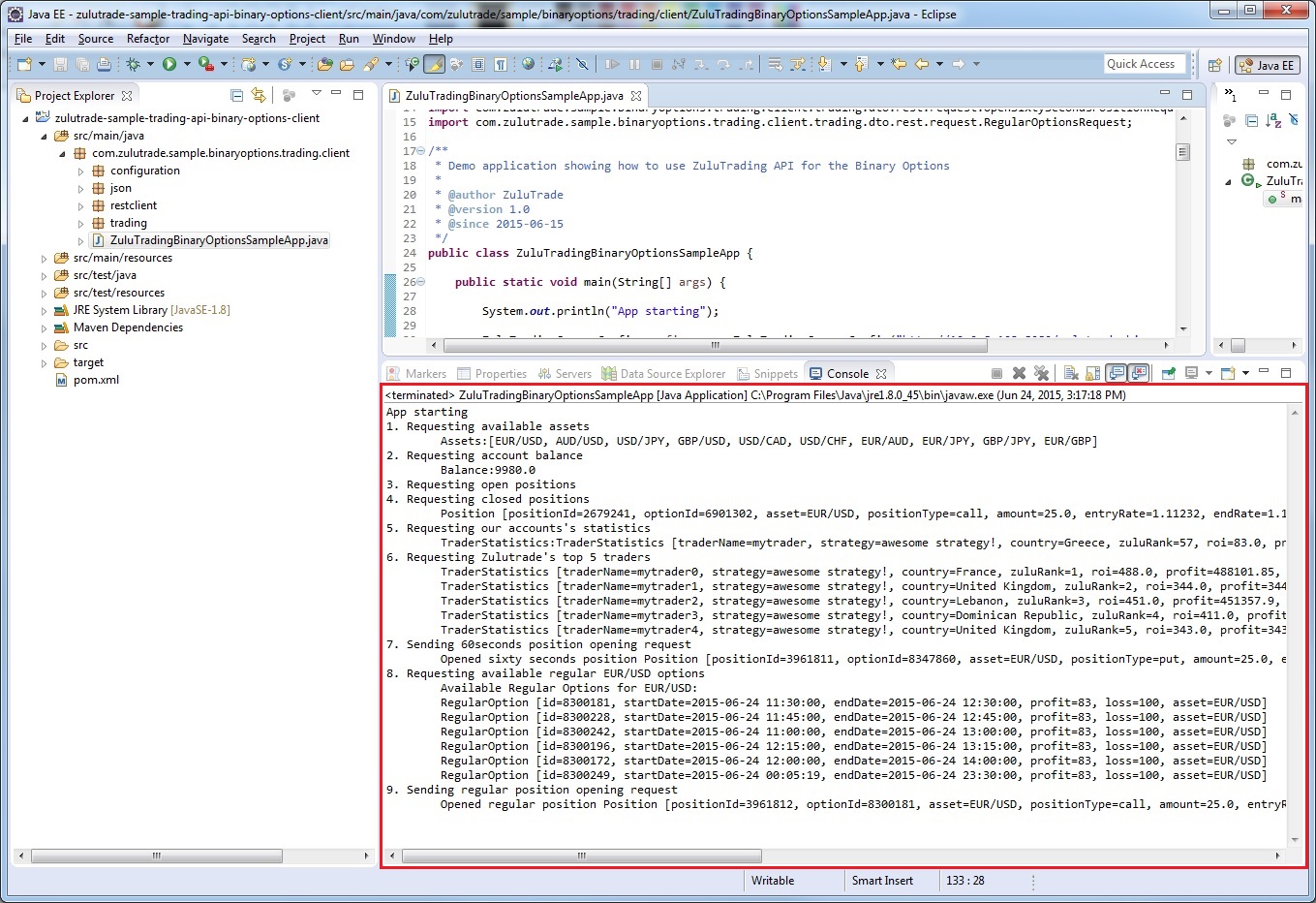 Navigate in project and open ZuluTradingBinaryOptionsSampleApp.java, the source will open in editor file
