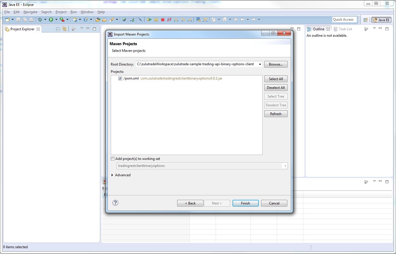 Unzip zulutrade-sample-trading-api-binary-options-client.rar into C:\zulutradeWorkspace