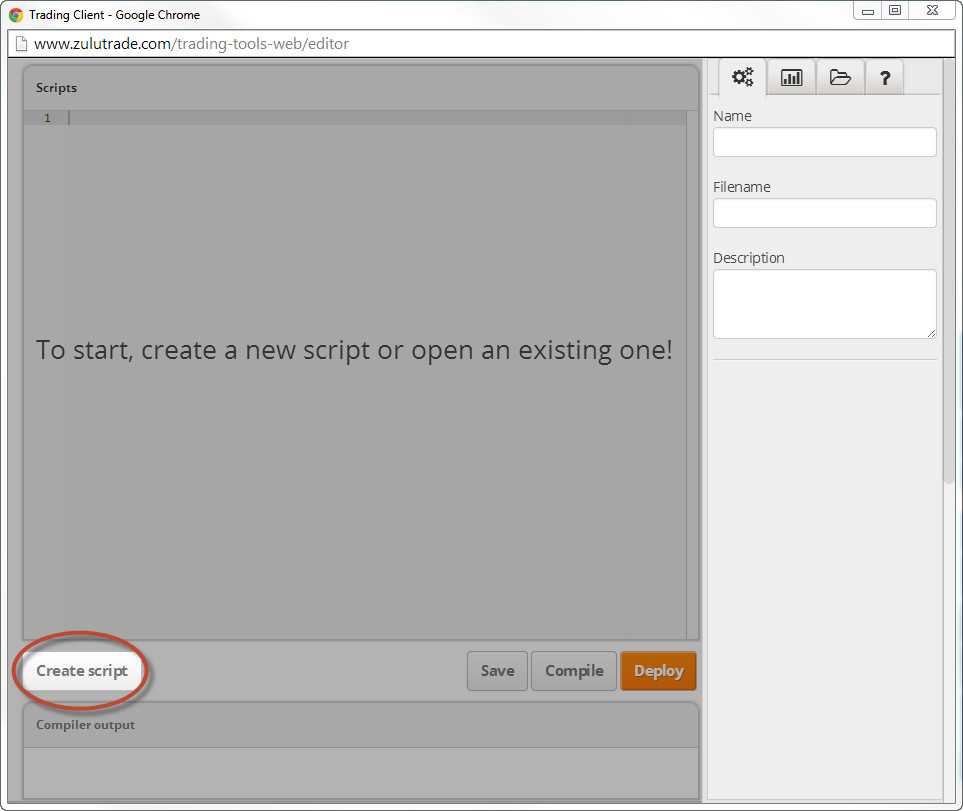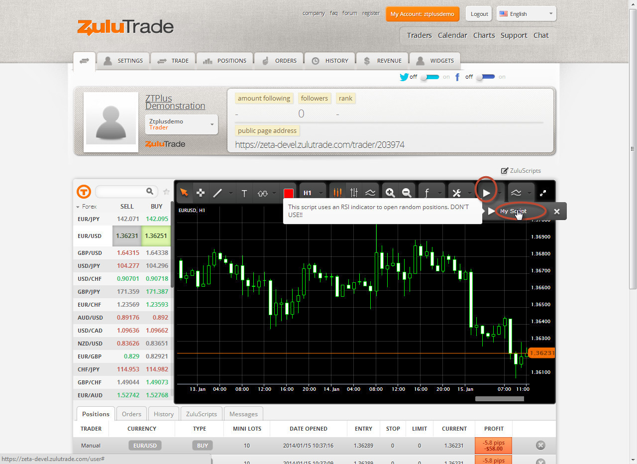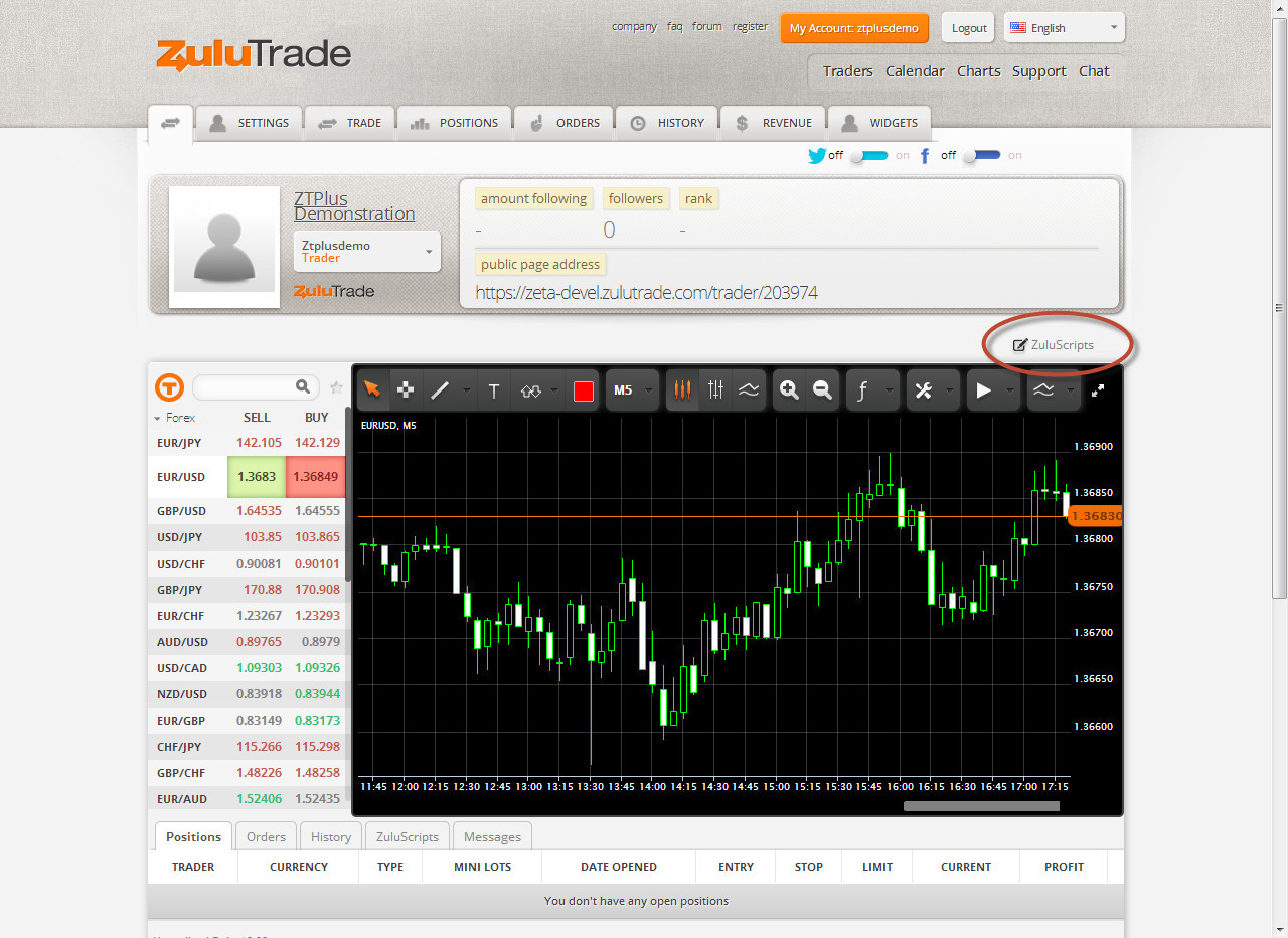 Достъп до редактора на скриптове за търговия в ZuluTrade